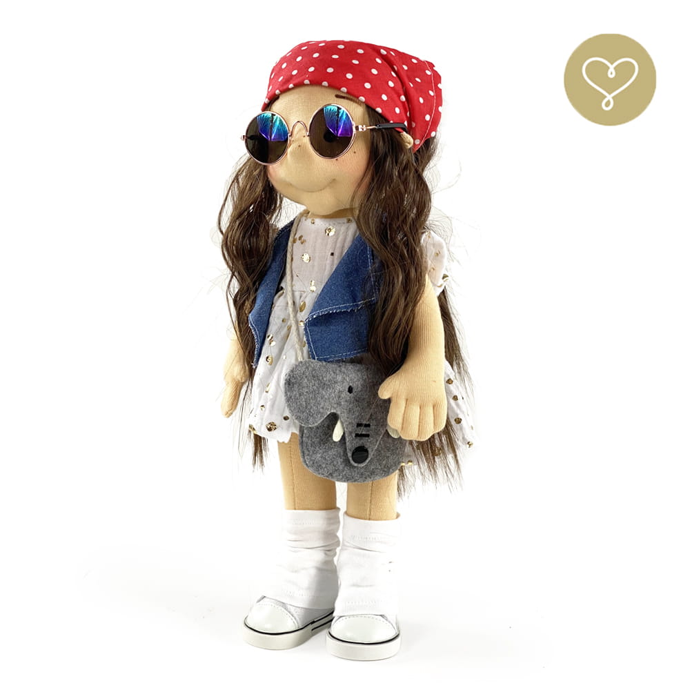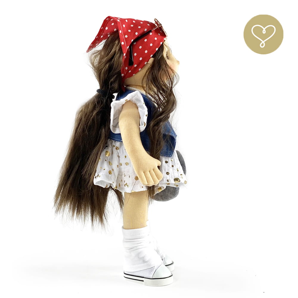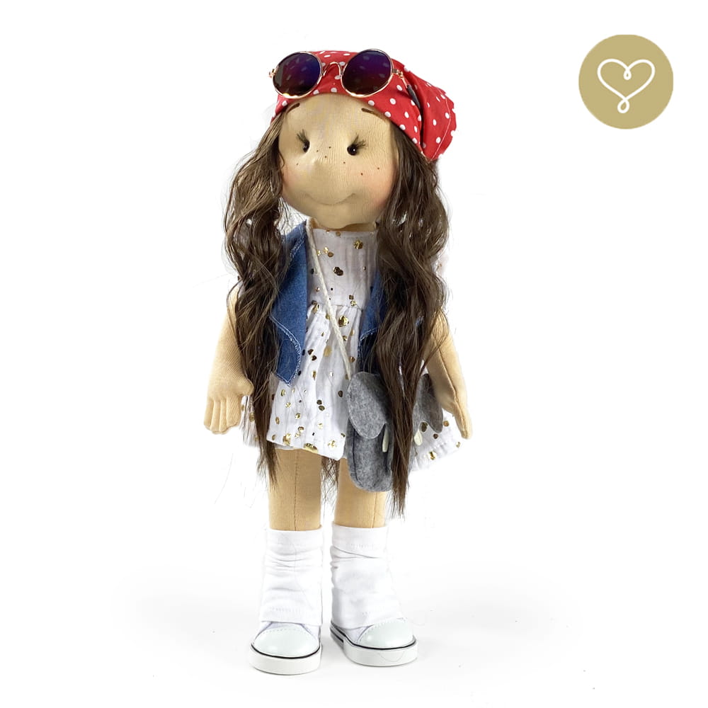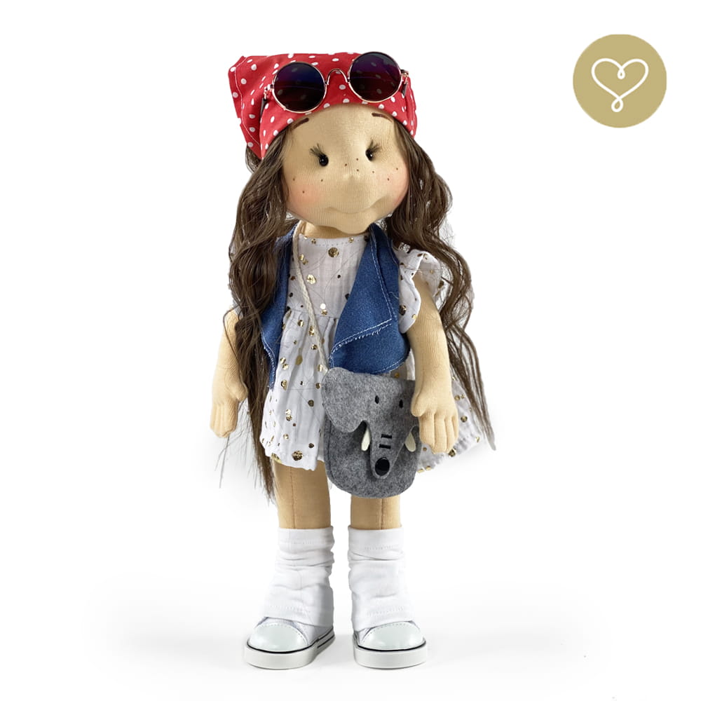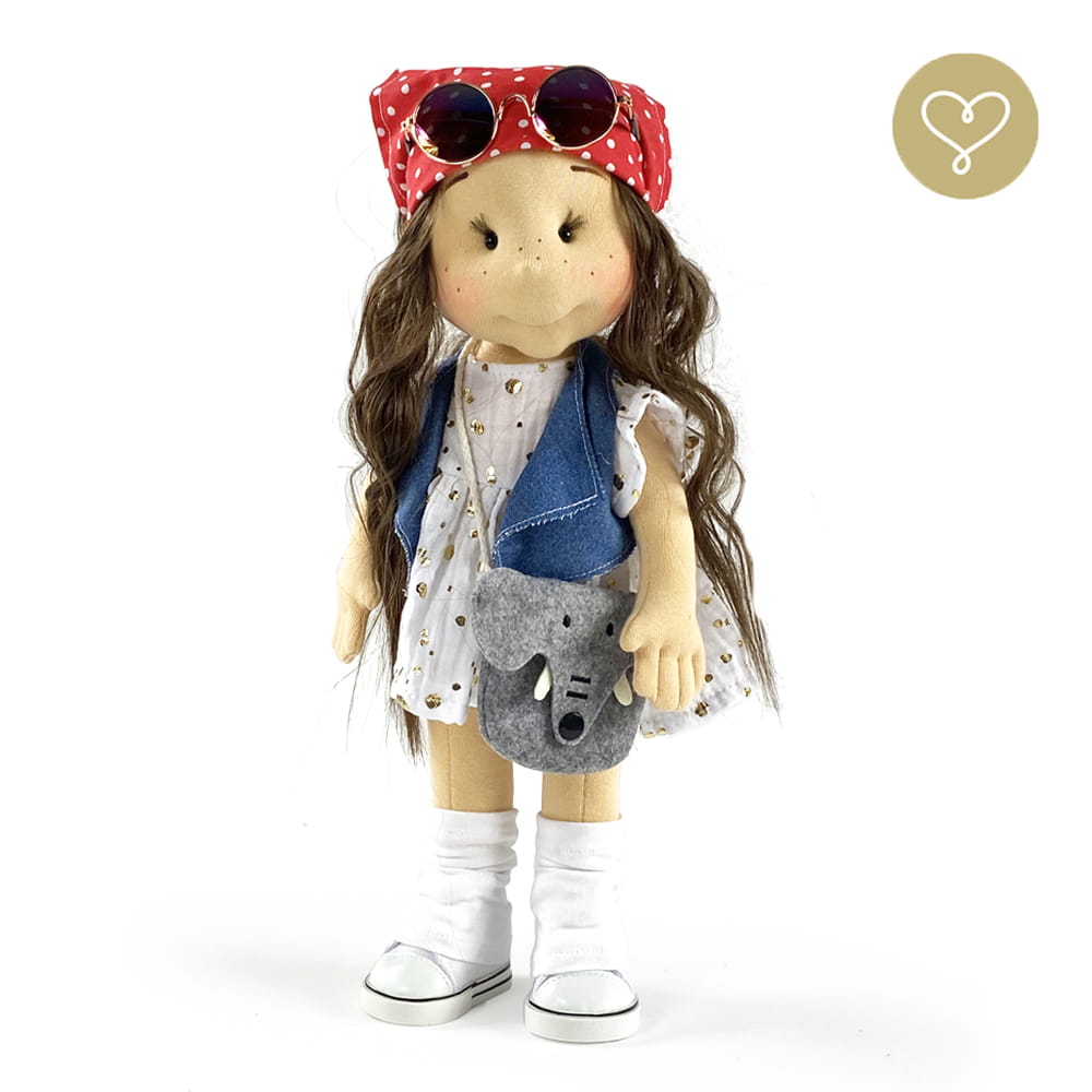 Handgemachte Stoffpuppe neu interpretiert. Genäht in der kleinen Manufaktur Lulludolls in Warschau.