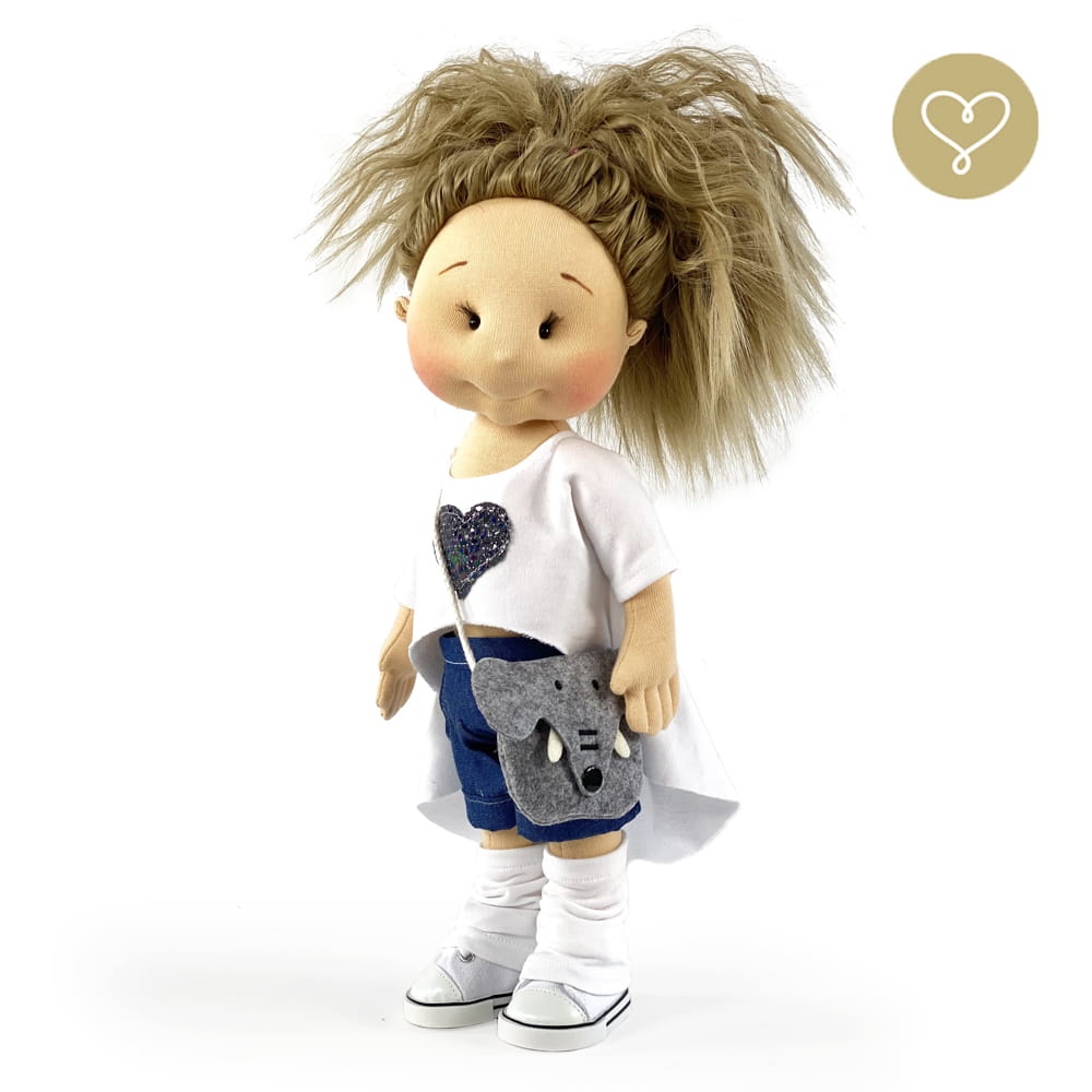 Damen-Tasche "Elefant"... kann geöffnet werden, und im Inneren ist genug Platz, um eine Süßigkeit zu verstecken! Für meine Puppen ist das sehr wichtig.... denn Süßigkeiten sind das einzige Essen, das sie mögen, besonders wenn sie mit ihren Freundinnen weit weg reisen.