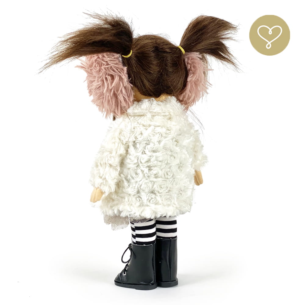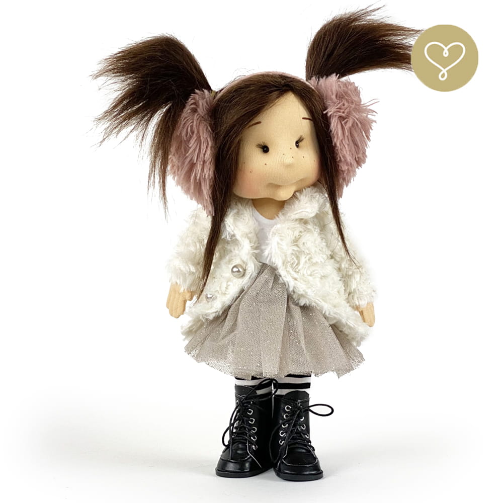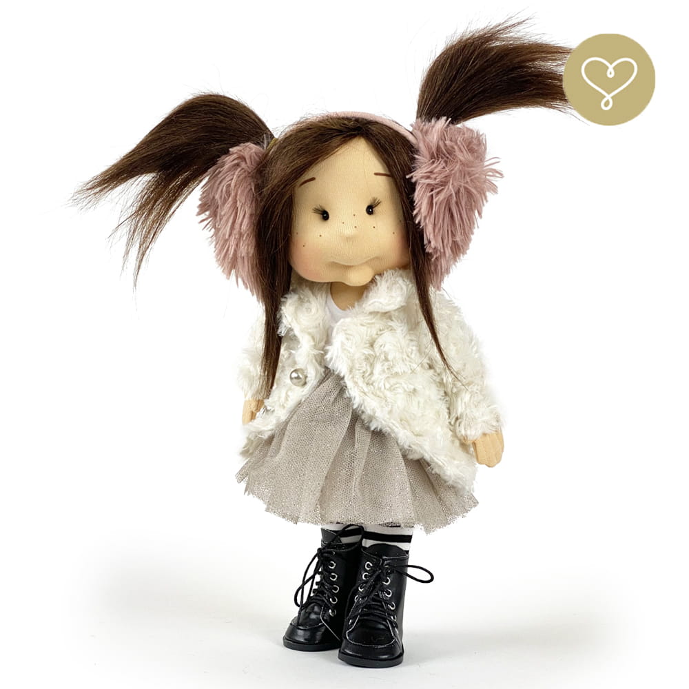 Die Liebe zum Detail und größte Sorgfalt steckt in jeder Faser dieser Puppe. Sie ist 40 cm groß, weich und sehr angenehm. Trotz dem Verzicht auf Drähte oder andere stabilisierende Elemente, kann eine LulluDoll selbstständig stehen und sitzen. Ihr Kopf und die Gliedmaßen sind beweglich. Das weiche Haar fühlt sich nahezu echt an, es lässt sich wunderbar frisieren und hat eine gute Kämmbarkeit. Die Materialien werden sorgsam ausgewählt, sind von höchster Qualität und Strapazierfähigkeit, weil die Sicherheit unerer Artikel höchste Priorität hat. Die Kleidung lässt sich leicht an- und umziehen. Im Shop unter dem Punkt Kleidung finden Sie weitere Kleidungsstücke im Angebot.