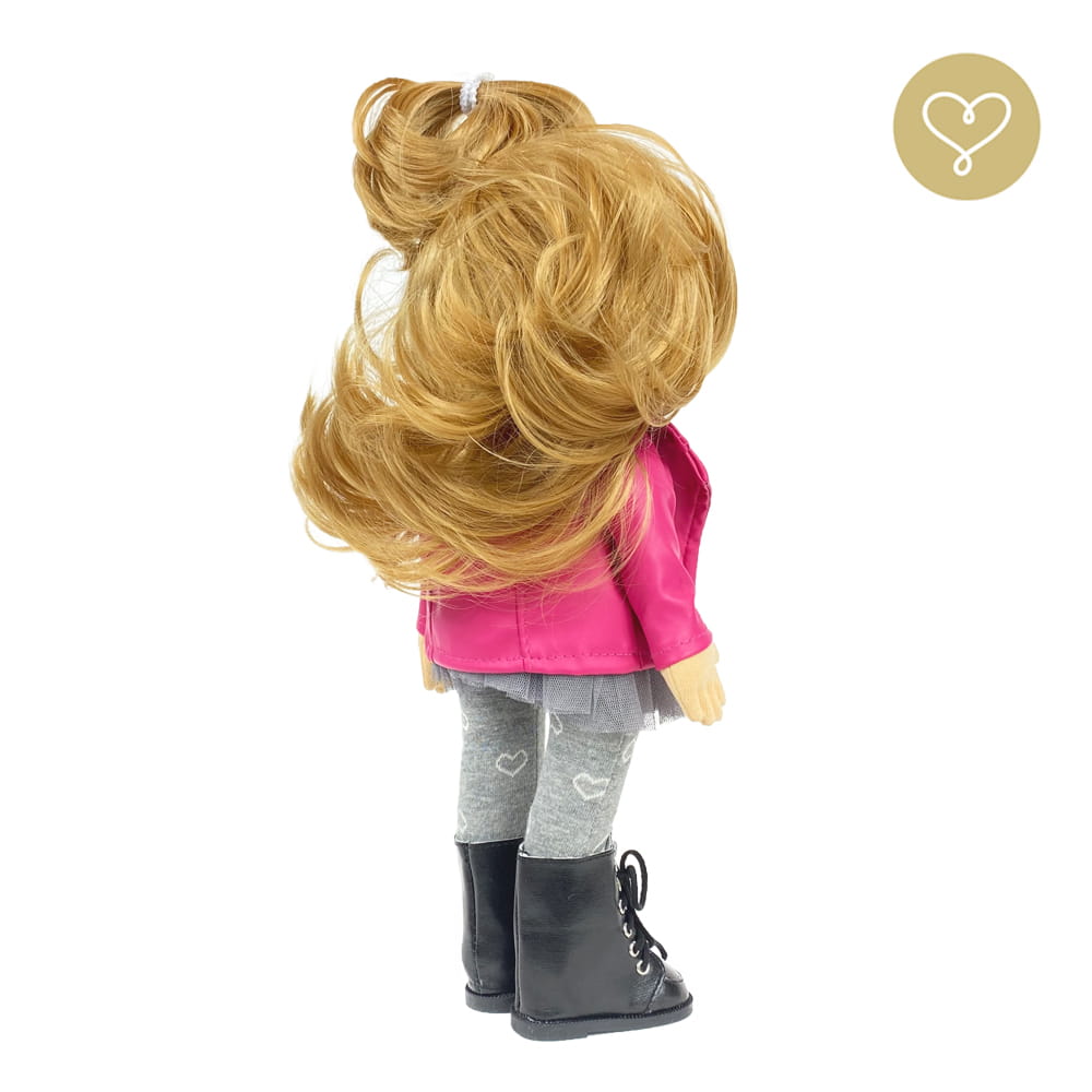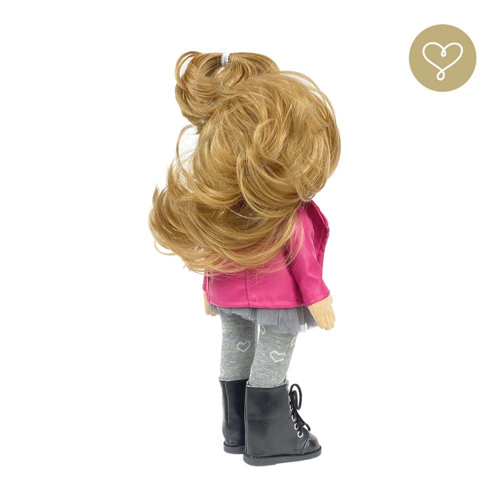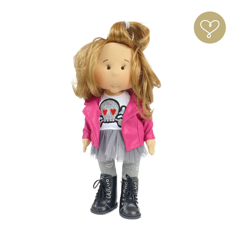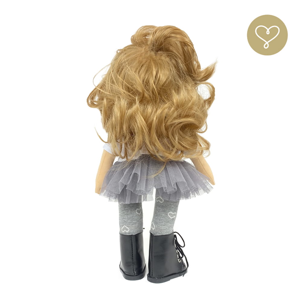 Die Liebe zum Detail und größte Sorgfalt steckt in jeder Faser dieser Puppe. Sie ist 40 cm groß, weich und sehr angenehm. Trotz dem Verzicht auf Drähte oder andere stabilisierende Elemente, kann eine LulluDoll selbstständig stehen und sitzen. Ihr Kopf und die Gliedmaßen sind beweglich. Das weiche Haar fühlt sich nahezu echt an, es lässt sich wunderbar frisieren und hat eine gute Kämmbarkeit. Die Materialien werden sorgsam ausgewählt, sind von höchster Qualität und Strapazierfähigkeit, weil die Sicherheit unerer Artikel höchste Priorität hat. Die Kleidung lässt sich leicht an- und umziehen. Im Shop unter dem Punkt Kleidung finden Sie weitere Kleidungsstücke im Angebot.
