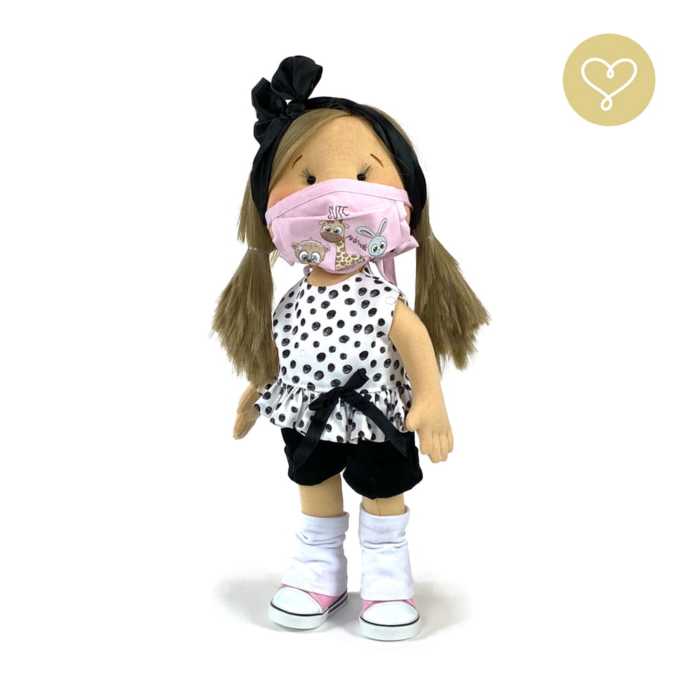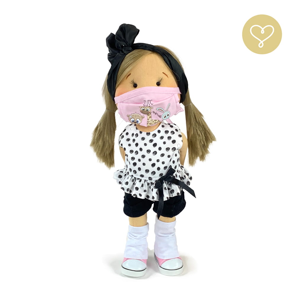 Handgemachte Stoffpuppe neu interpretiert. Genäht in der kleinen Manufaktur Lulludolls in Warschau.