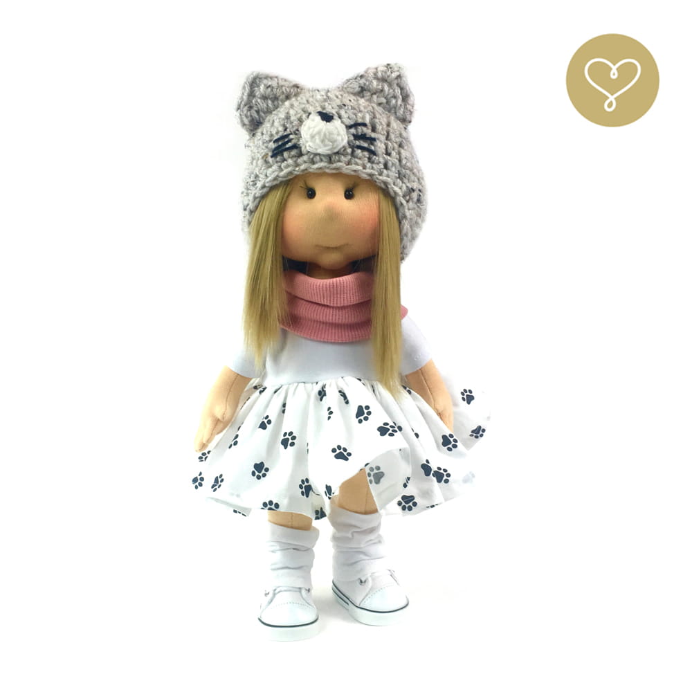 Handgemachte Stoffpuppe neu interpretiert. Genäht in der kleinen Manufaktur Lulludolls in Warschau.