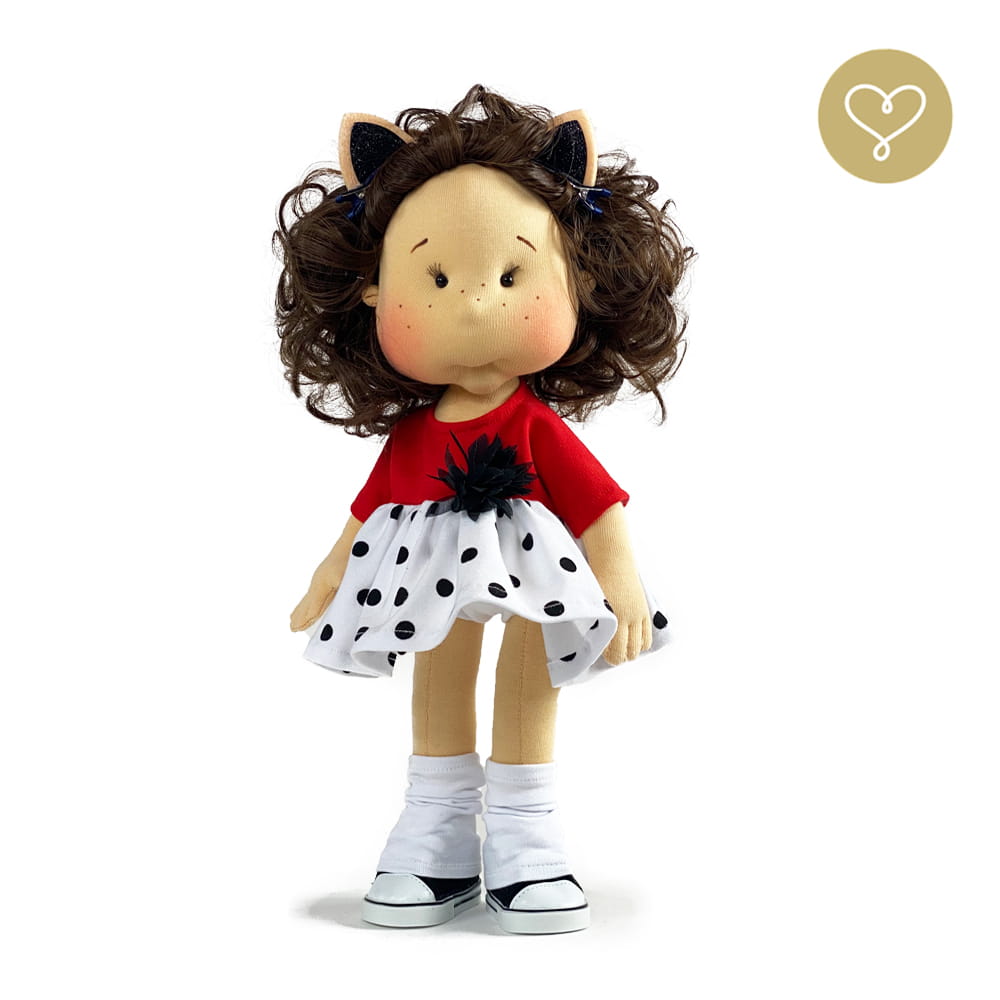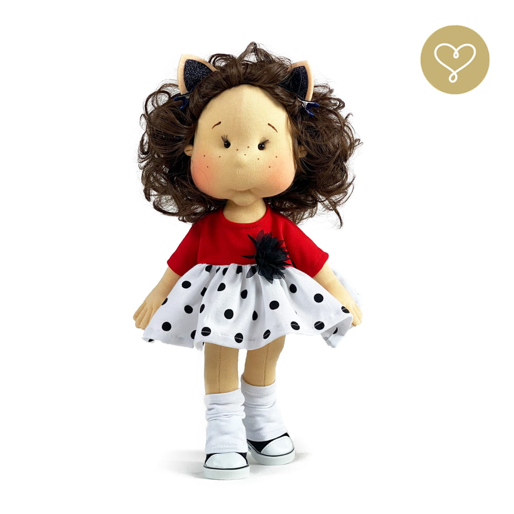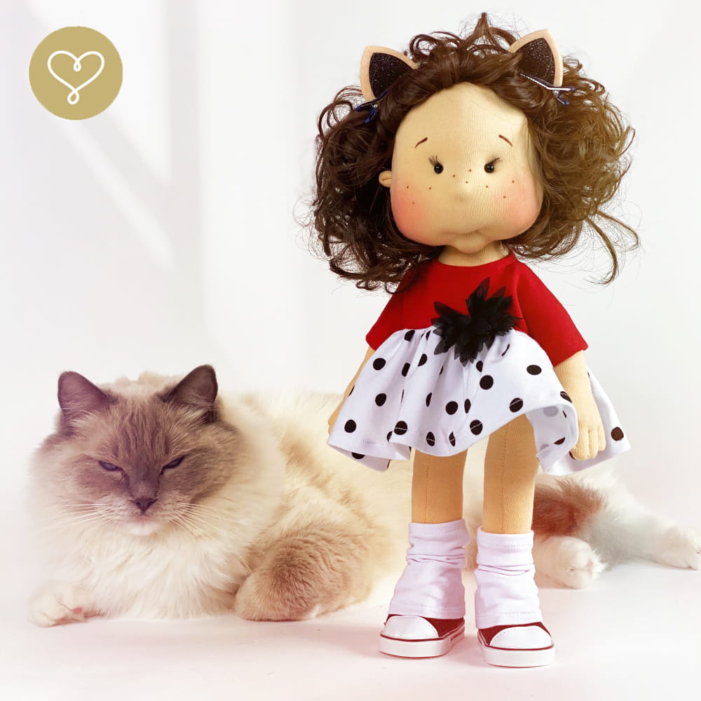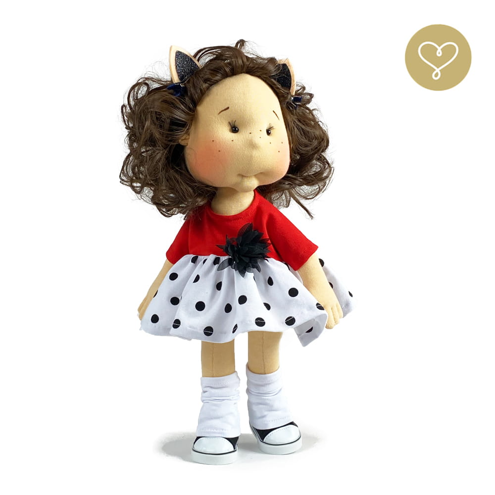 Handgemachte Stoffpuppe neu interpretiert. Genäht in der kleinen Manufaktur Lulludolls in Warschau.