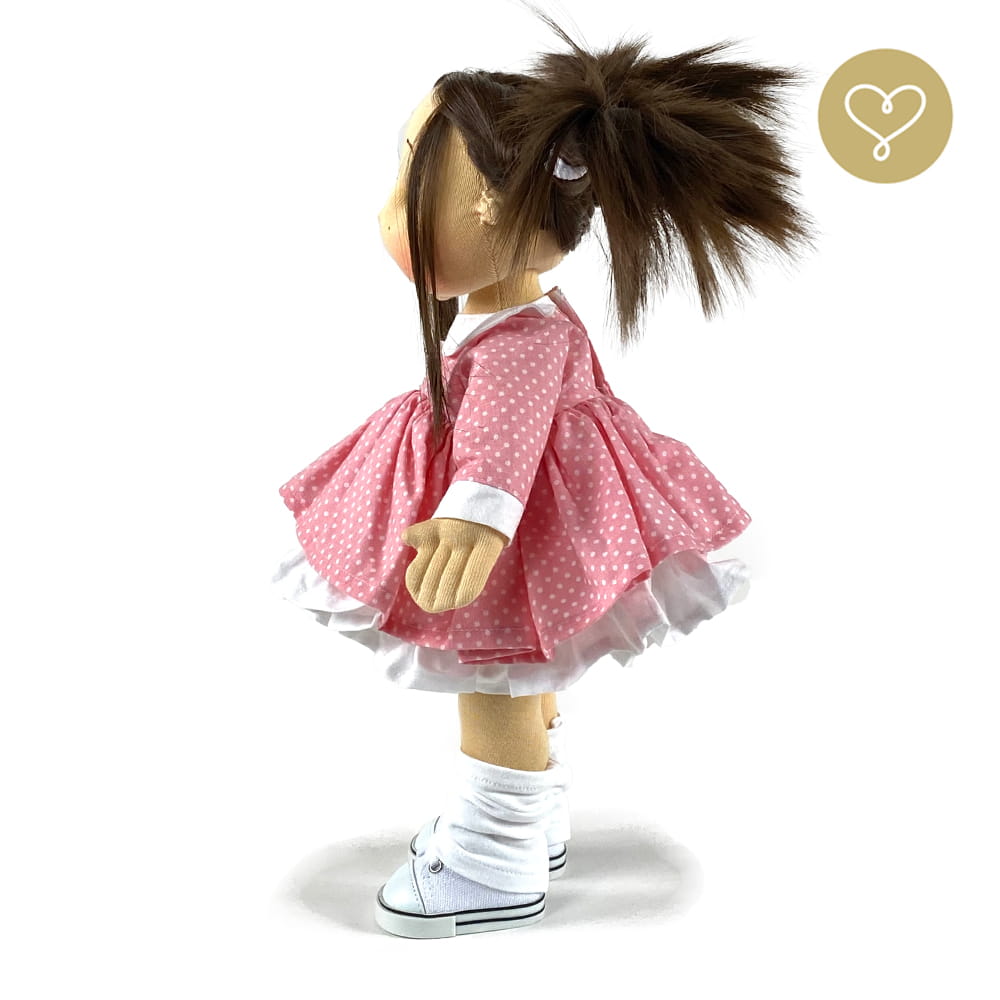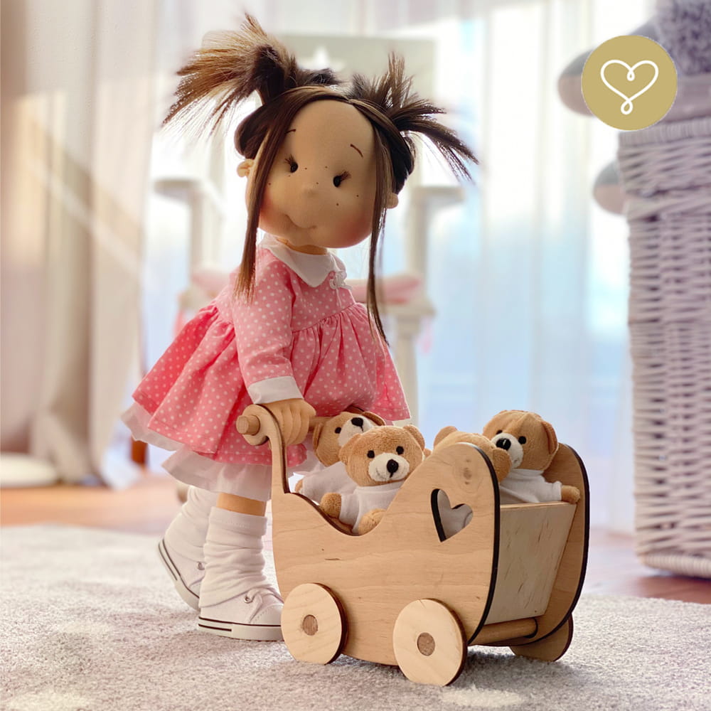 Handgemachte Stoffpuppe neu interpretiert. Genäht in der kleinen Manufaktur Lulludolls in Warschau.