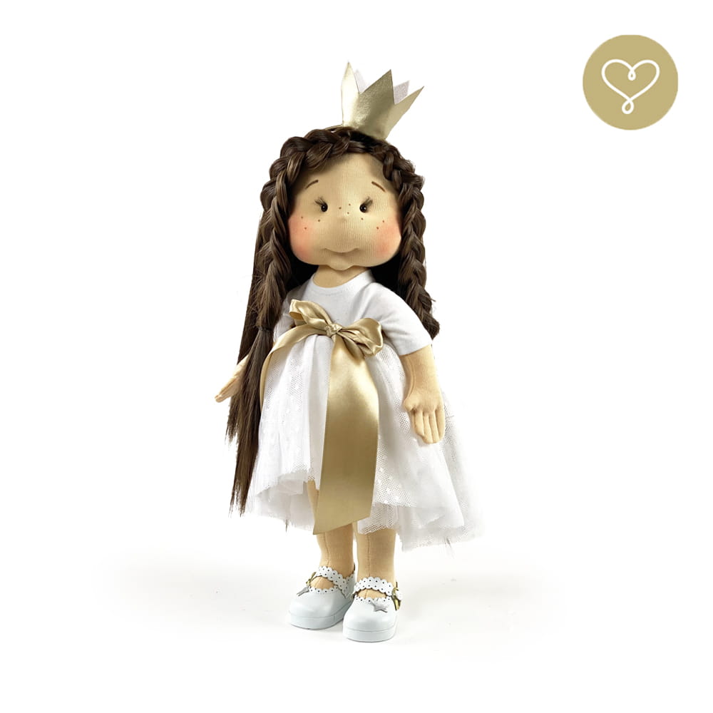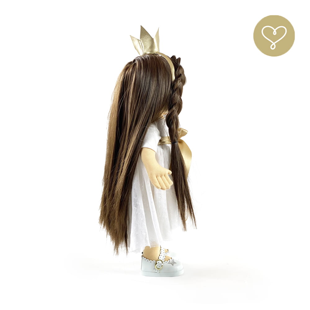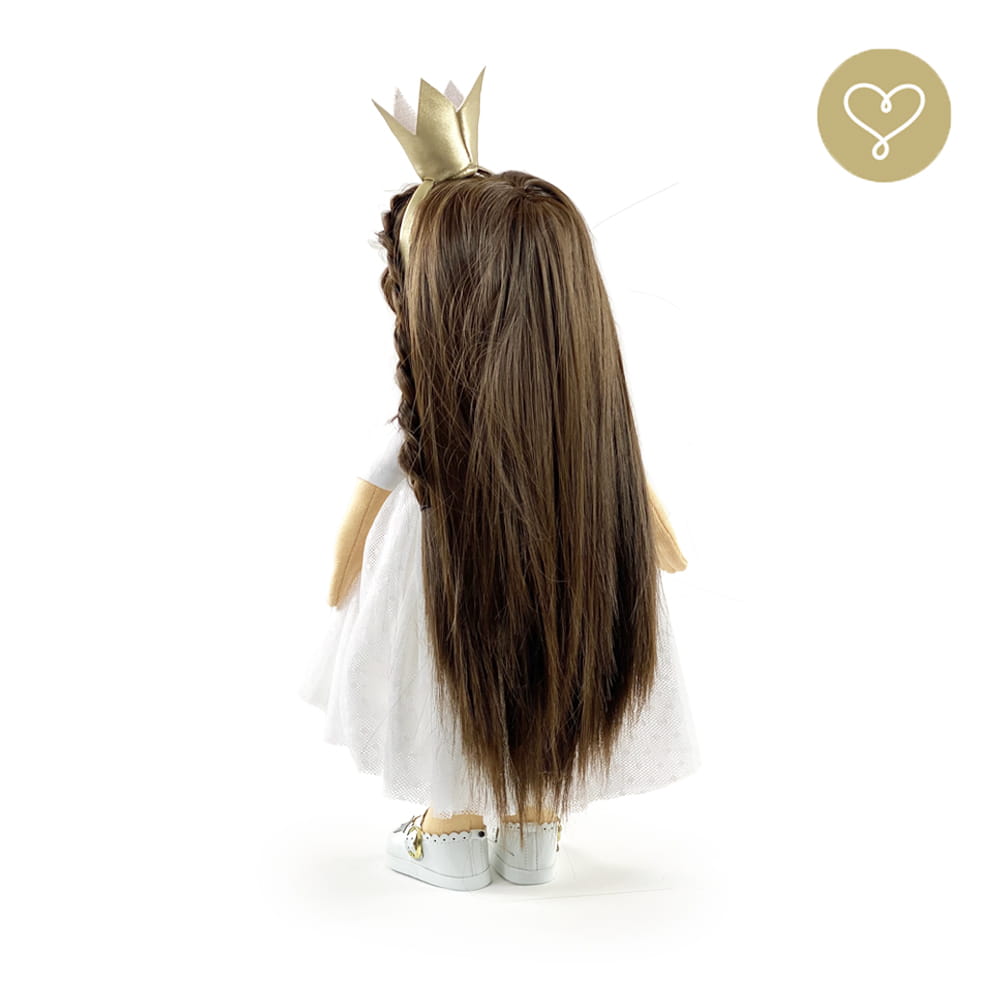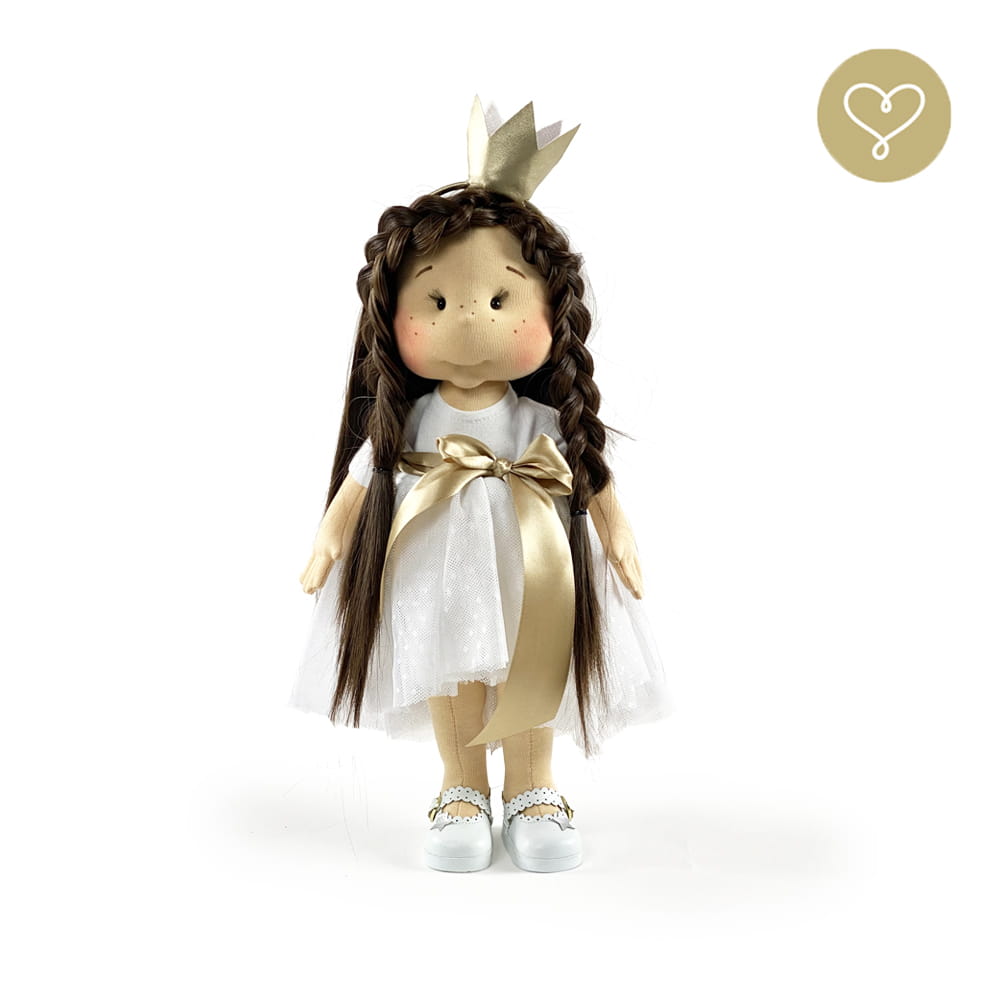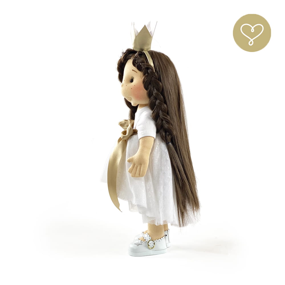 Die Liebe zum Detail und größte Sorgfalt steckt in jeder Faser dieser Puppe. Sie ist 40 cm groß, weich und sehr angenehm. Trotz dem Verzicht auf Drähte oder andere stabilisierende Elemente, kann eine LulluDoll selbstständig stehen und sitzen. Ihr Kopf und die Gliedmaßen sind beweglich. Das weiche Haar fühlt sich nahezu echt an, es lässt sich wunderbar frisieren und hat eine gute Kämmbarkeit. Die Materialien werden sorgsam ausgewählt, sind von höchster Qualität und Strapazierfähigkeit, weil die Sicherheit unerer Artikel höchste Priorität hat. Die Kleidung lässt sich leicht an- und umziehen. Im Shop unter dem Punkt Kleidung finden Sie weitere Kleidungsstücke im Angebot.