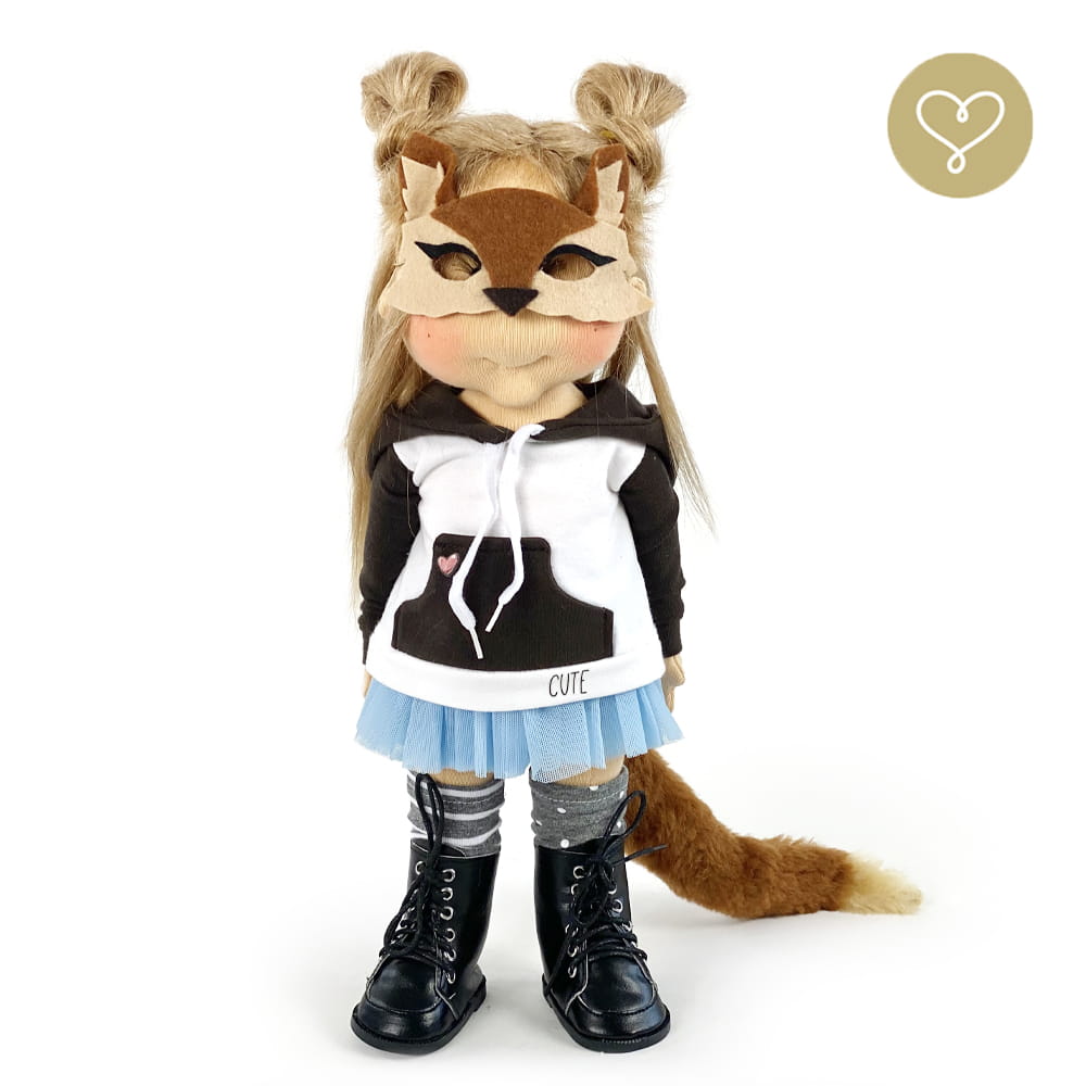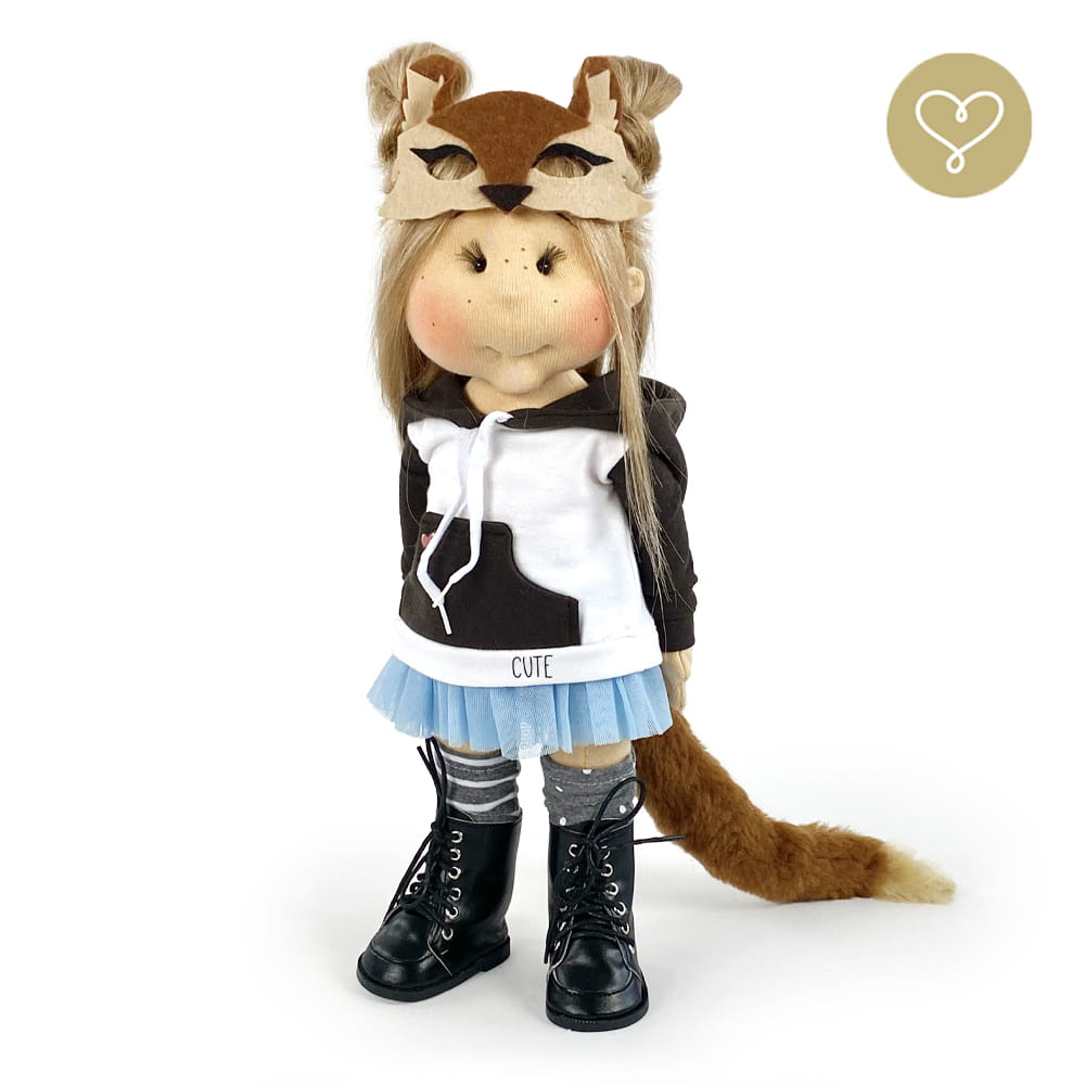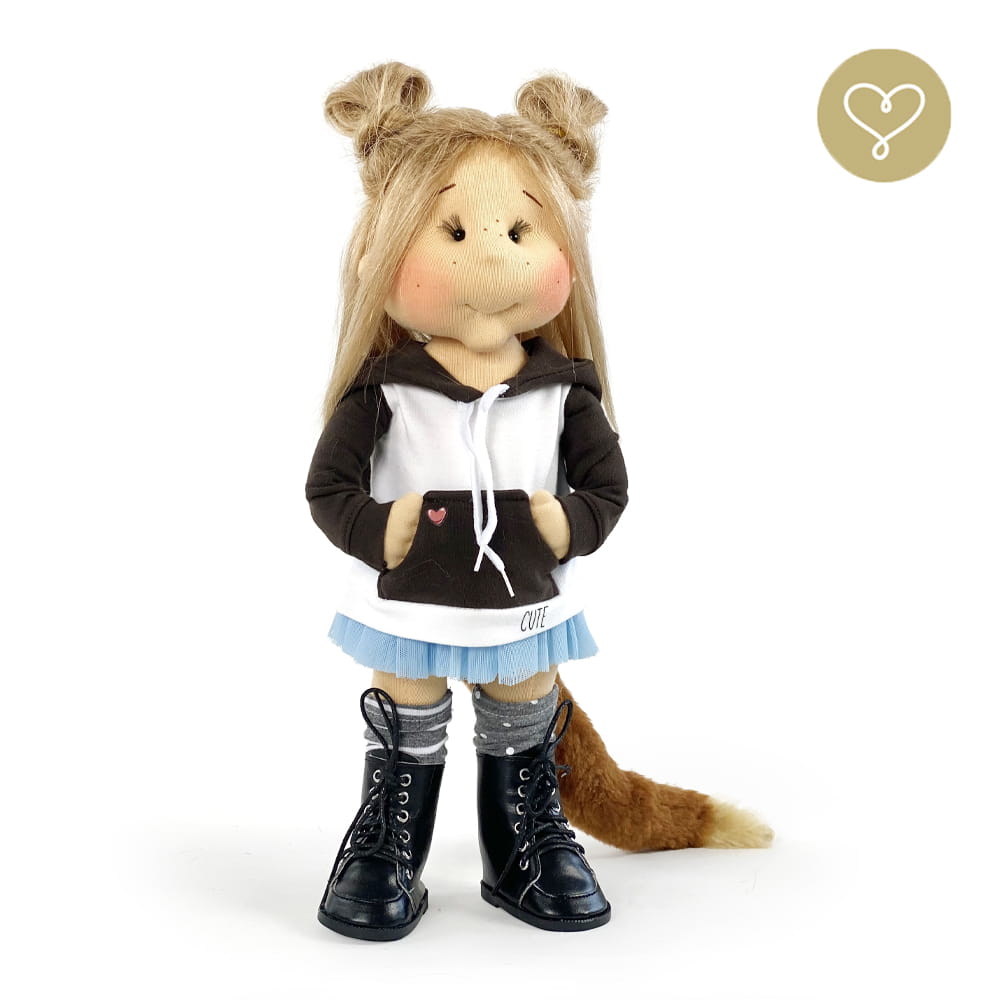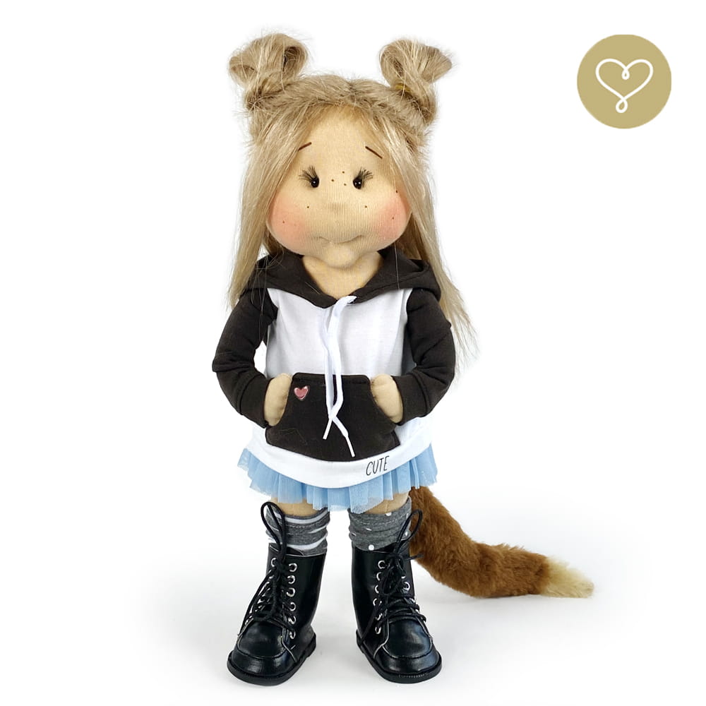 Handgemachte Stoffpuppe neu interpretiert. Genäht in der kleinen Manufaktur Lulludolls in Warschau.