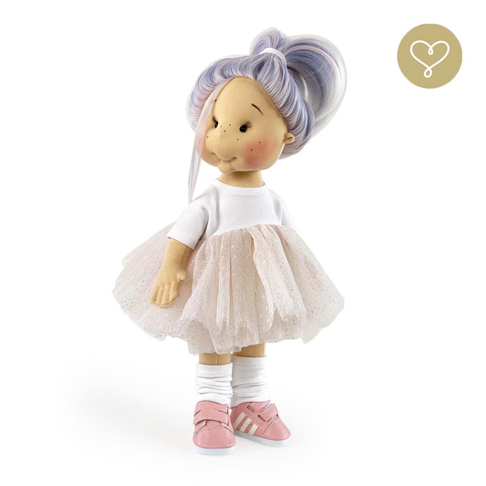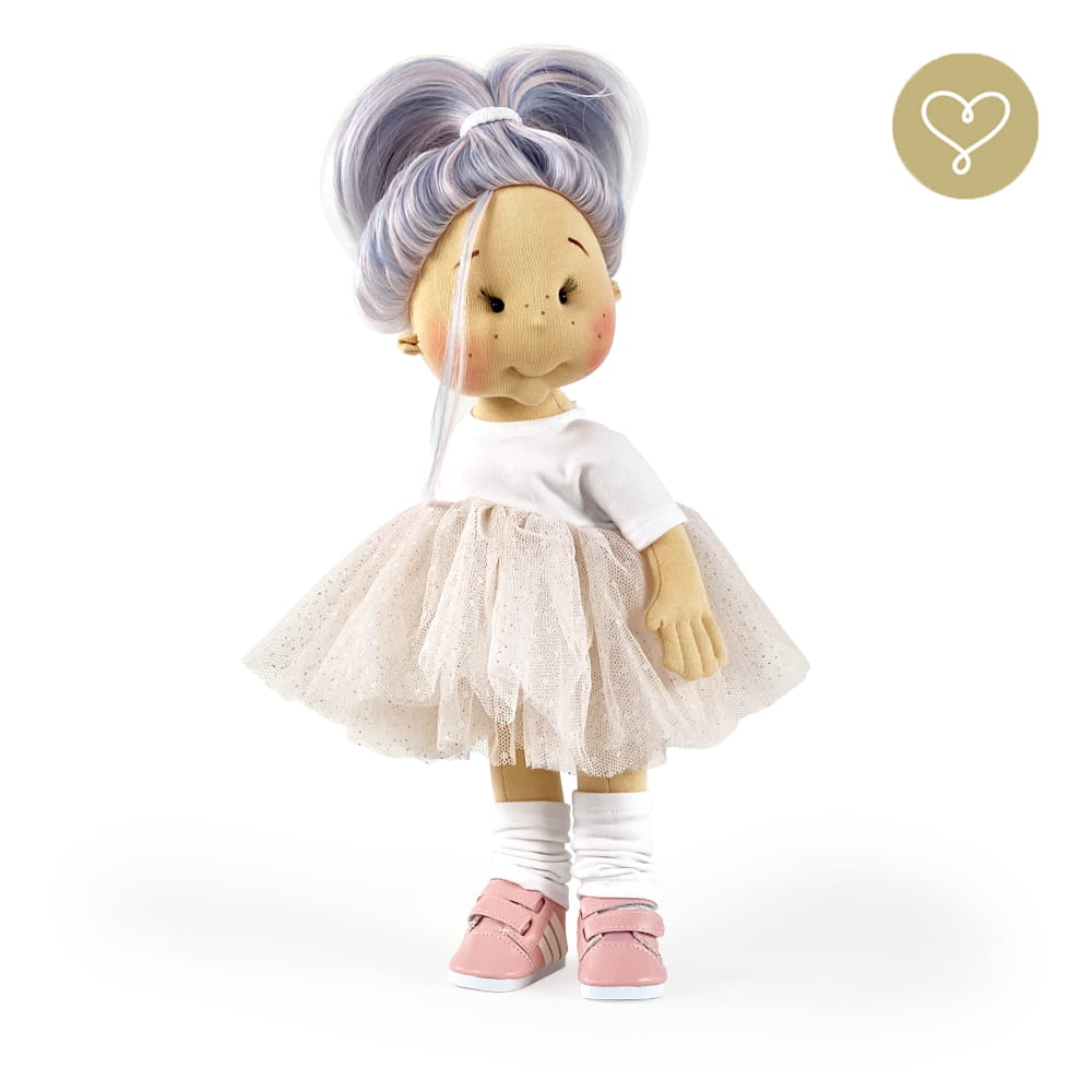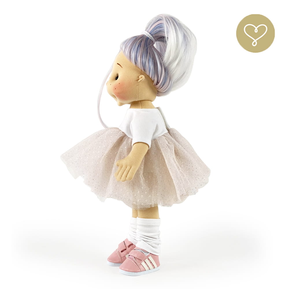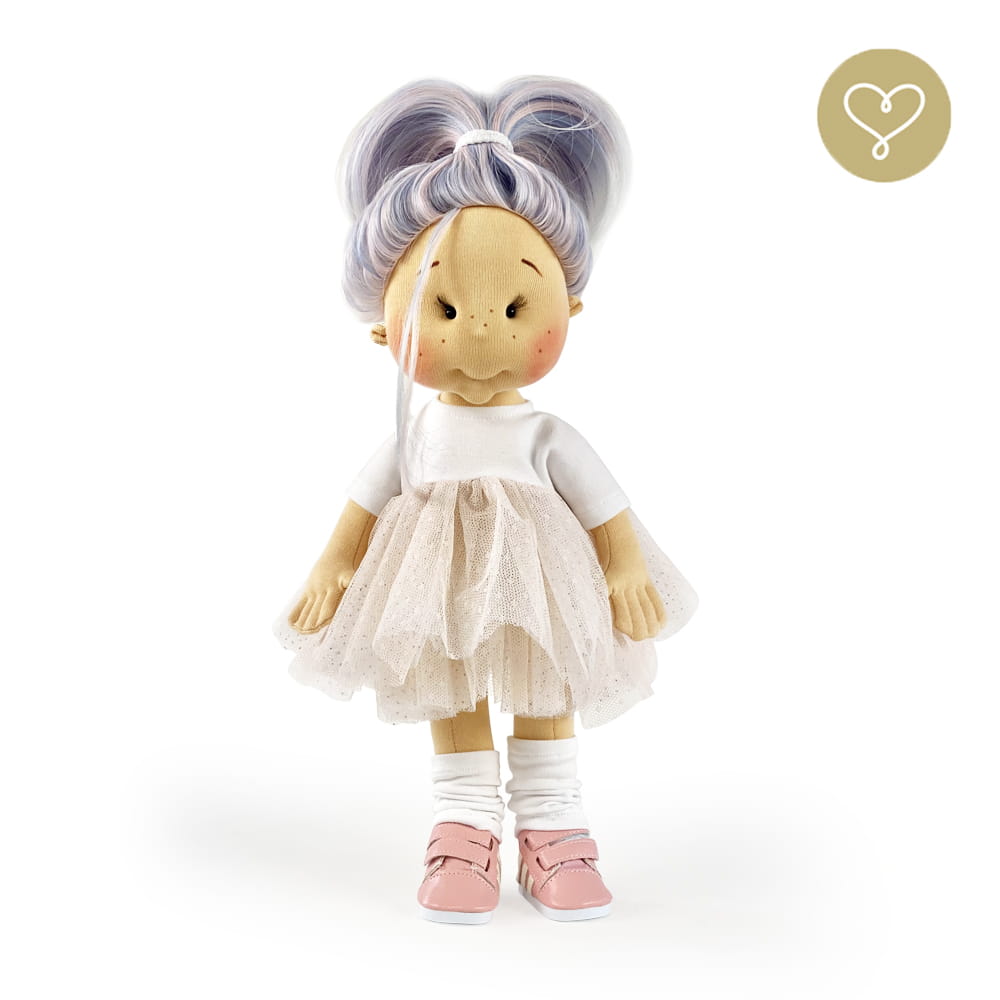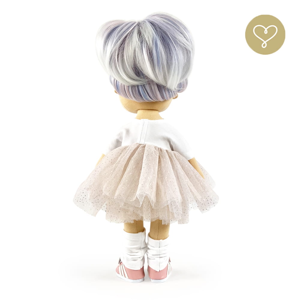 Die Liebe zum Detail und größte Sorgfalt steckt in jeder Faser dieser Puppe. Sie ist 40 cm groß, weich und sehr angenehm. Trotz dem Verzicht auf Drähte oder andere stabilisierende Elemente, kann eine LulluDoll selbstständig stehen und sitzen. Ihr Kopf und die Gliedmaßen sind beweglich. Das weiche Haar fühlt sich nahezu echt an, es lässt sich wunderbar frisieren und hat eine gute Kämmbarkeit. Die Materialien werden sorgsam ausgewählt, sind von höchster Qualität und Strapazierfähigkeit, weil die Sicherheit unerer Artikel höchste Priorität hat. Die Kleidung lässt sich leicht an- und umziehen. Im Shop unter dem Punkt Kleidung finden Sie weitere Kleidungsstücke im Angebot.
