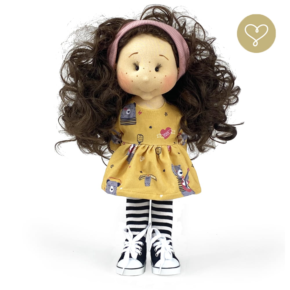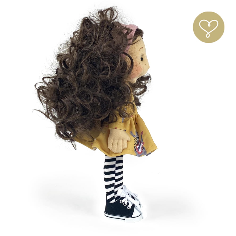 Handgemachte Stoffpuppe neu interpretiert. Genäht in der kleinen Manufaktur Lulludolls in Warschau.