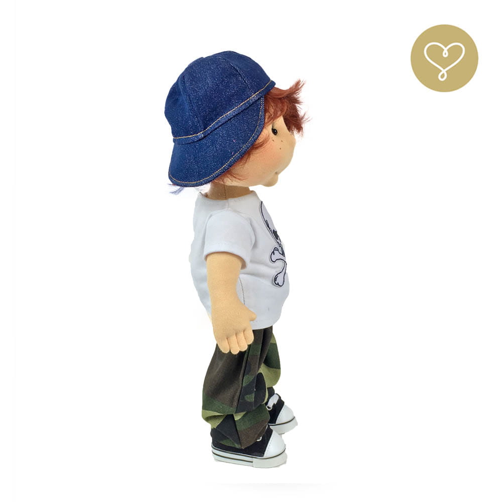 Die Liebe zum Detail und größte Sorgfalt steckt in jeder Faser dieser Puppe. Sie ist 40 cm groß, weich und sehr angenehm. Trotz dem Verzicht auf Drähte oder andere stabilisierende Elemente, kann eine LulluDoll selbstständig stehen und sitzen. Ihr Kopf und die Gliedmaßen sind beweglich. Das weiche Haar fühlt sich nahezu echt an, es lässt sich wunderbar frisieren und hat eine gute Kämmbarkeit. Die Materialien werden sorgsam ausgewählt, sind von höchster Qualität und Strapazierfähigkeit, weil die Sicherheit unerer Artikel höchste Priorität hat. Die Kleidung lässt sich leicht an- und umziehen. Im Shop unter dem Punkt Kleidung finden Sie weitere Kleidungsstücke im Angebot.