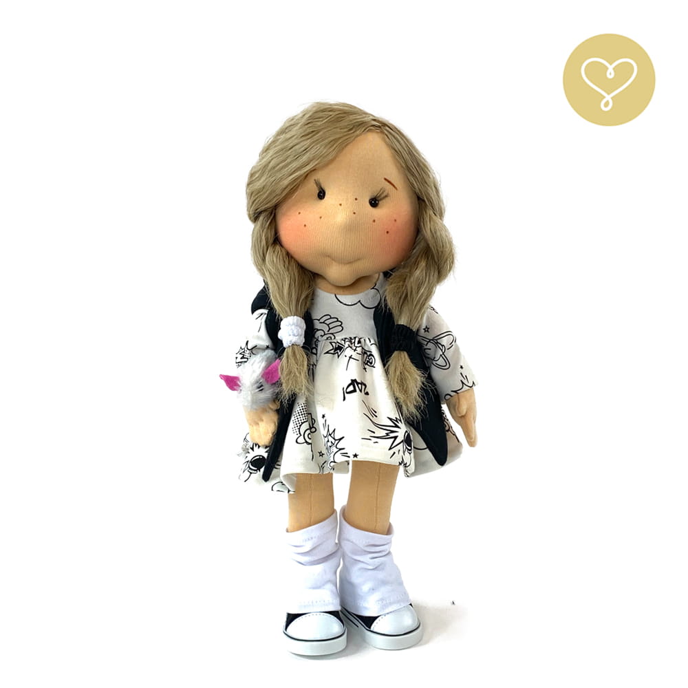 Handgemachte Stoffpuppe neu interpretiert. Genäht in der kleinen Manufaktur Lulludolls in Warschau.