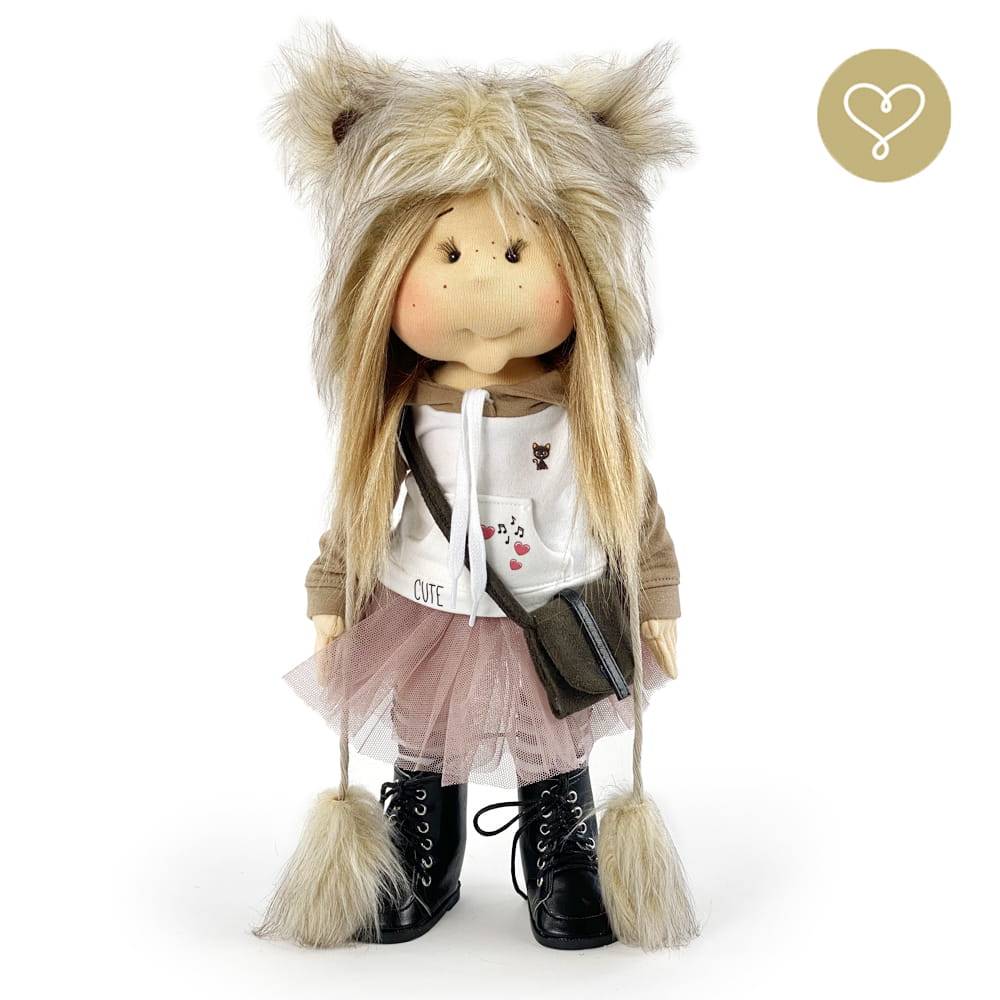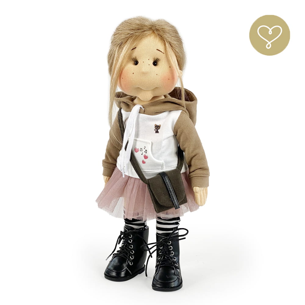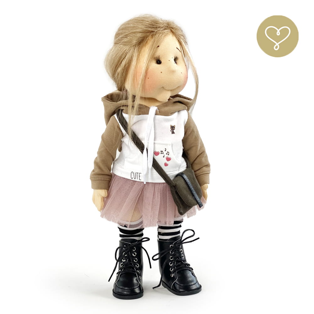 Handgemachte Stoffpuppe neu interpretiert. Genäht in der kleinen Manufaktur Lulludolls in Warschau.