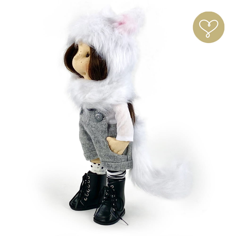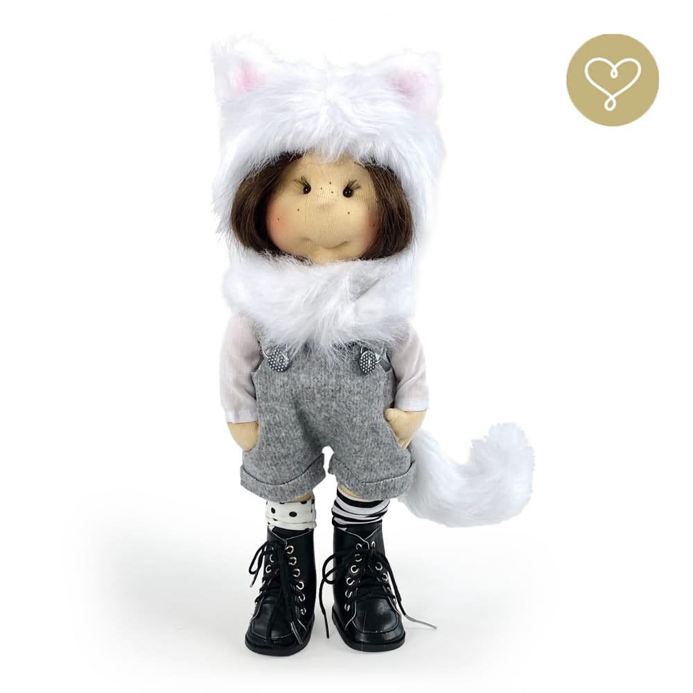 Die Liebe zum Detail und größte Sorgfalt steckt in jeder Faser dieser Puppe. Sie ist 40 cm groß, weich und sehr angenehm. Trotz dem Verzicht auf Drähte oder andere stabilisierende Elemente, kann eine LulluDoll selbstständig stehen und sitzen. Ihr Kopf und die Gliedmaßen sind beweglich. Das weiche Haar fühlt sich nahezu echt an, es lässt sich wunderbar frisieren und hat eine gute Kämmbarkeit. Die Materialien werden sorgsam ausgewählt, sind von höchster Qualität und Strapazierfähigkeit, weil die Sicherheit unerer Artikel höchste Priorität hat. Die Kleidung lässt sich leicht an- und umziehen. Im Shop unter dem Punkt Kleidung finden Sie weitere Kleidungsstücke im Angebot.