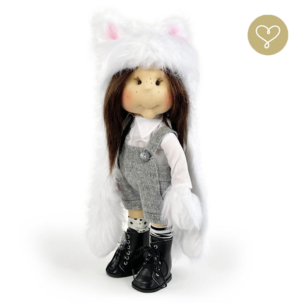 Handgemachte Stoffpuppe neu interpretiert. Genäht in der kleinen Manufaktur Lulludolls in Warschau.