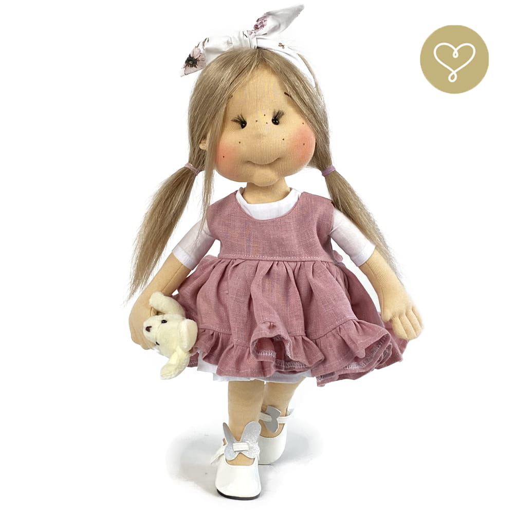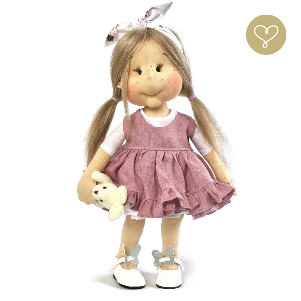 Handgemachte Stoffpuppe neu interpretiert. Genäht in der kleinen Manufaktur Lulludolls in Warschau.