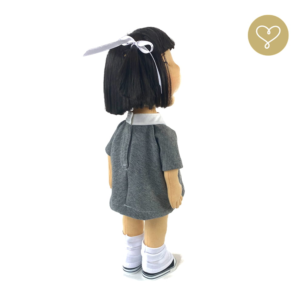 Die Liebe zum Detail und größte Sorgfalt steckt in jeder Faser dieser Puppe. Sie ist 40 cm groß, weich und sehr angenehm. Trotz dem Verzicht auf Drähte oder andere stabilisierende Elemente, kann eine LulluDoll selbstständig stehen und sitzen. Ihr Kopf und die Gliedmaßen sind beweglich. Das weiche Haar fühlt sich nahezu echt an, es lässt sich wunderbar frisieren und hat eine gute Kämmbarkeit. Die Materialien werden sorgsam ausgewählt, sind von höchster Qualität und Strapazierfähigkeit, weil die Sicherheit unerer Artikel höchste Priorität hat. Die Kleidung lässt sich leicht an- und umziehen. Im Shop unter dem Punkt Kleidung finden Sie weitere Kleidungsstücke im Angebot.