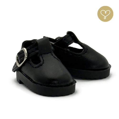 Czarne pół buty z eco-skóry z ozdobną klamrą.