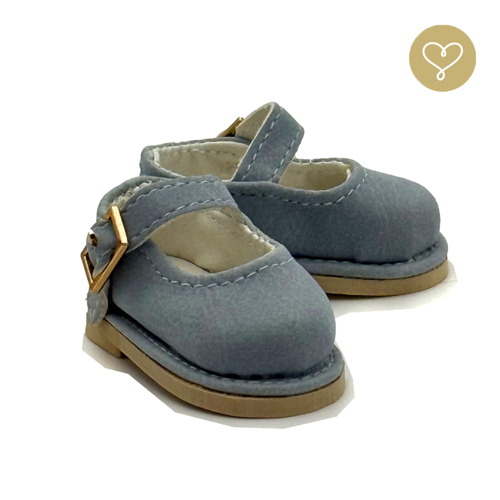 Niebieskie zamszowe pół buty z ozdobną klamrą.