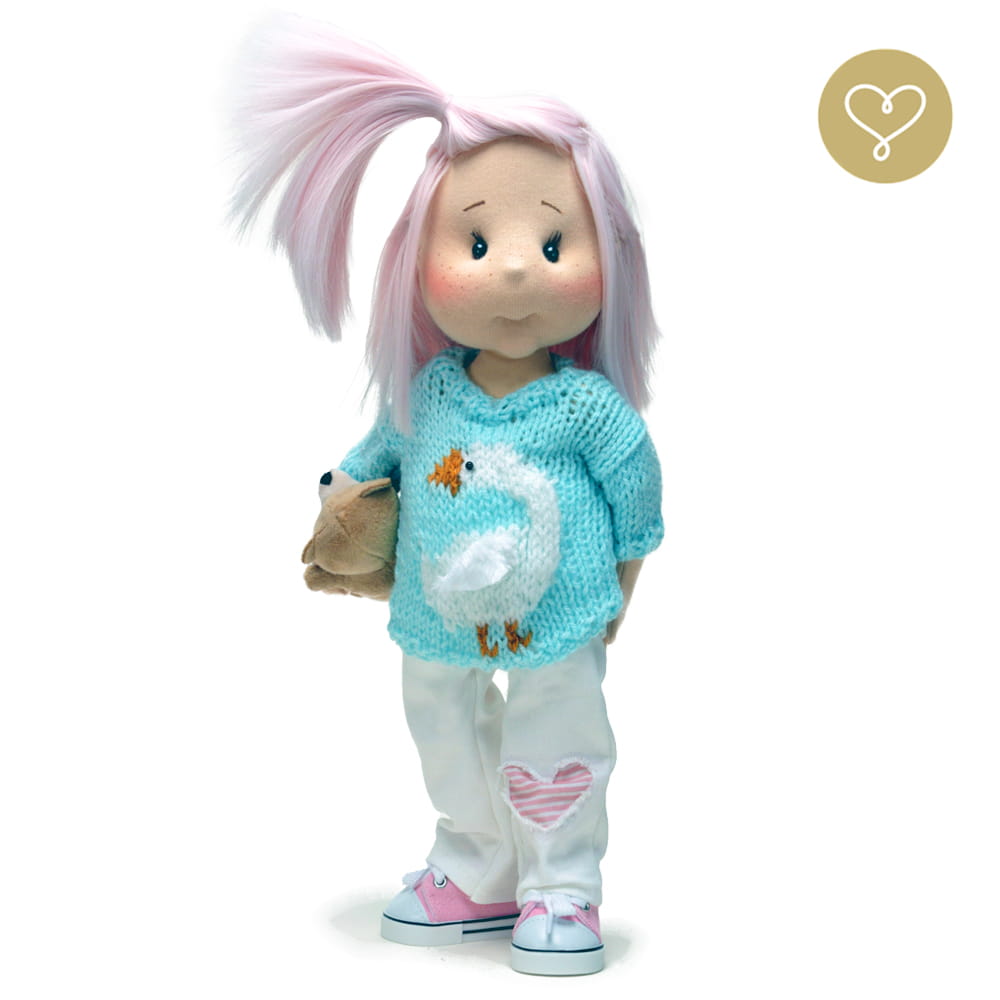 - Certyfikowana OEKO-TEX® owata poliestrowa wypełniająca wnętrze lalki