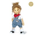 -Jeansowe spodnie ogrodniczki 3/4 na szelkach z aplikacją "Omg" i "Be Unique"