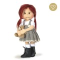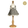 Lniana sukienka w kolorze szarym na szeleczkach, z drewnianymi guziczkami.